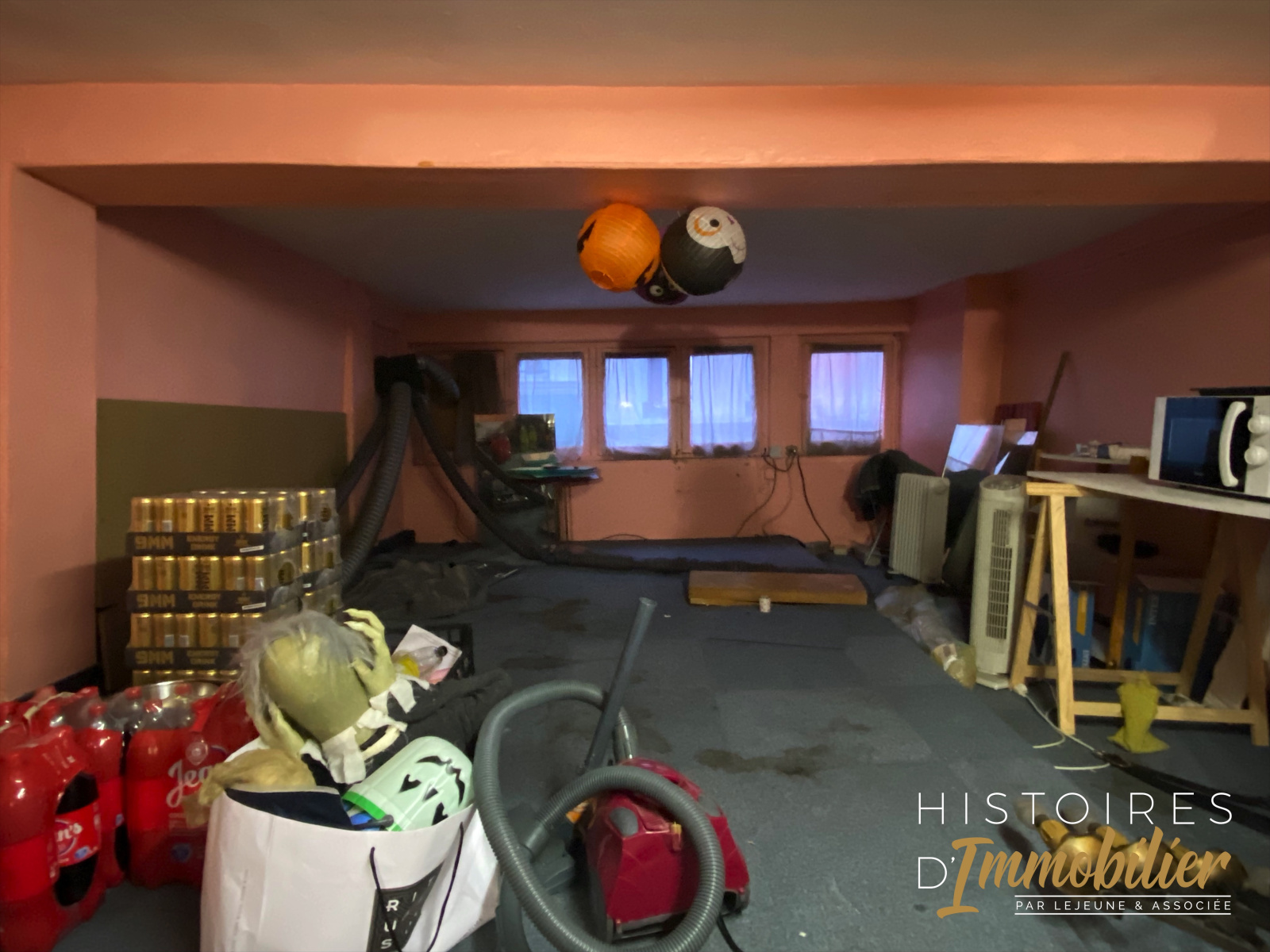 Il se compose d'une salle de bar de 21m2 en rdc, une réserve au premièr étage de 28m2 (moins de 1,80m de hauteur) accessible par les communs.