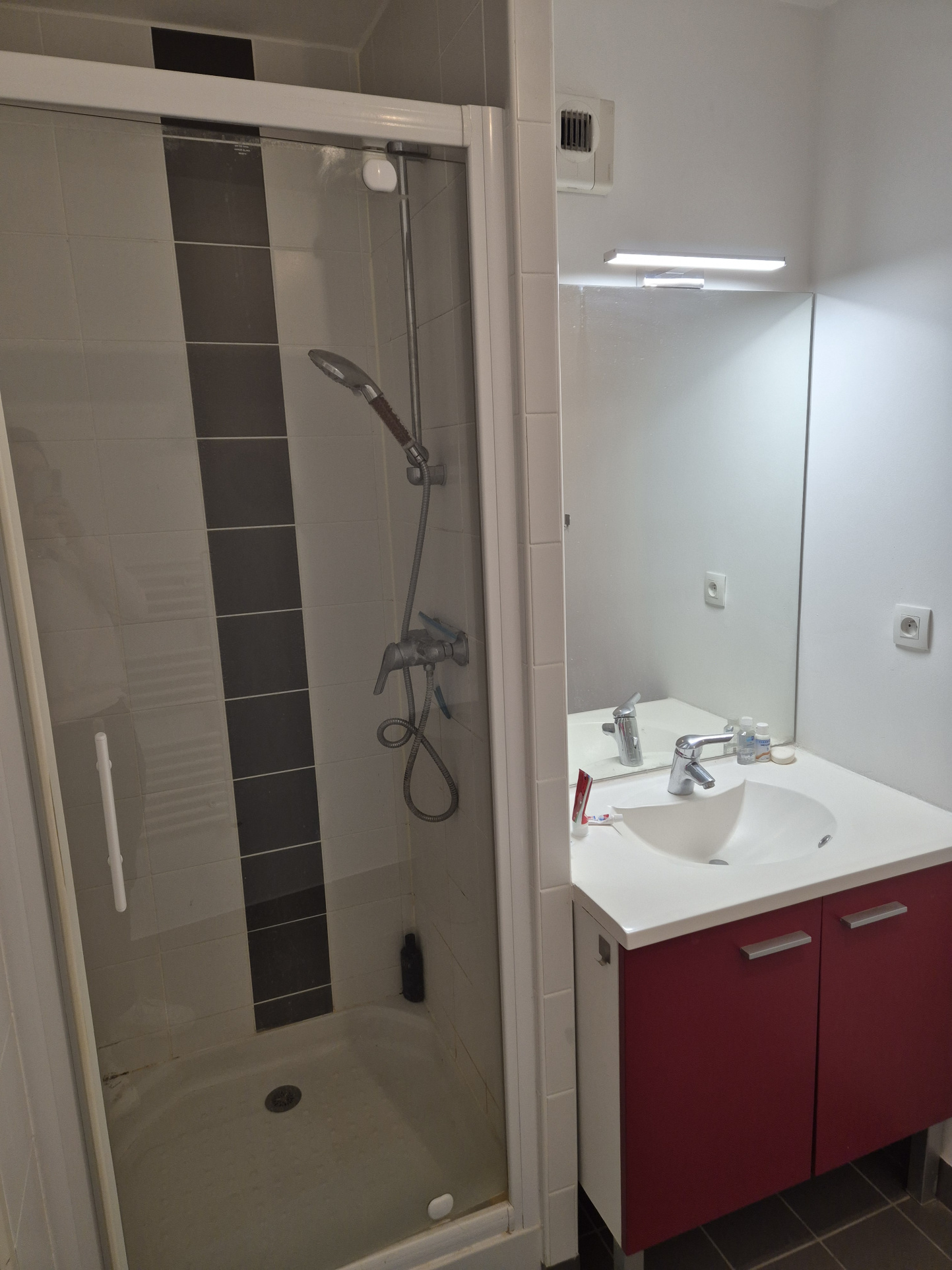 Le coin nuit se compose d’une chambre paisible et d’une salle de douche. Petit détail qui change tout au quotidien : les toilettes sont séparées.