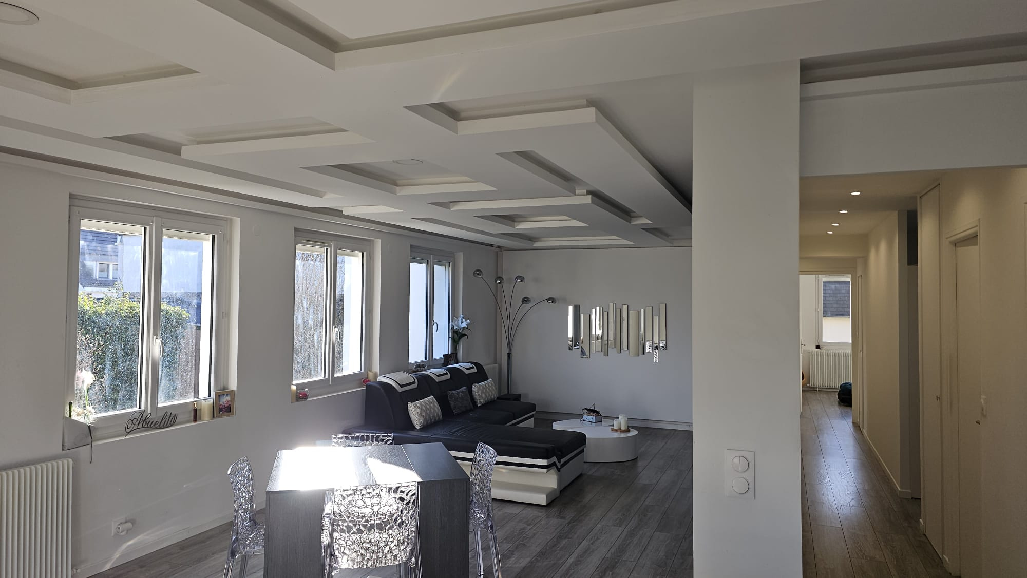 Le couloir dessert un wc, une salle de douche, un espace dressing, une chambre équipée de sa salle de douche et une seconde chambre.