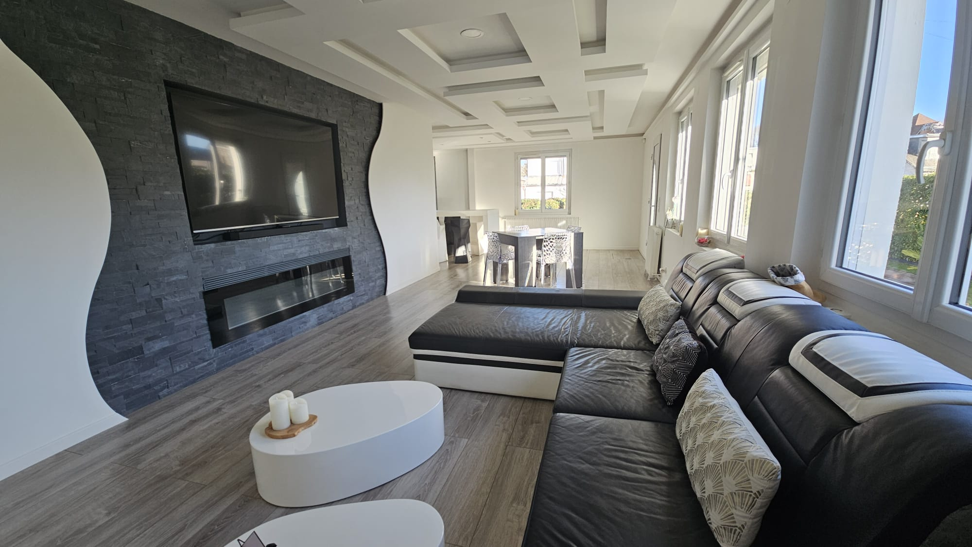 Elle se compoise d'une pièce de vie très lumineuse, une cuisine ouverte entièrement aménagée et équipée.