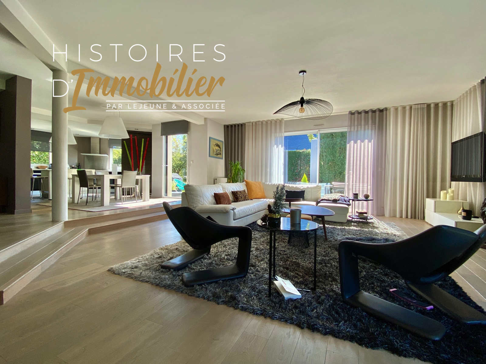 Histoires d'Immobilier vous présente en exclusivité cette superbe maison d'architecte de 226 m² au sol édifiée sur une parcelle de terrain arborée de 840 m².