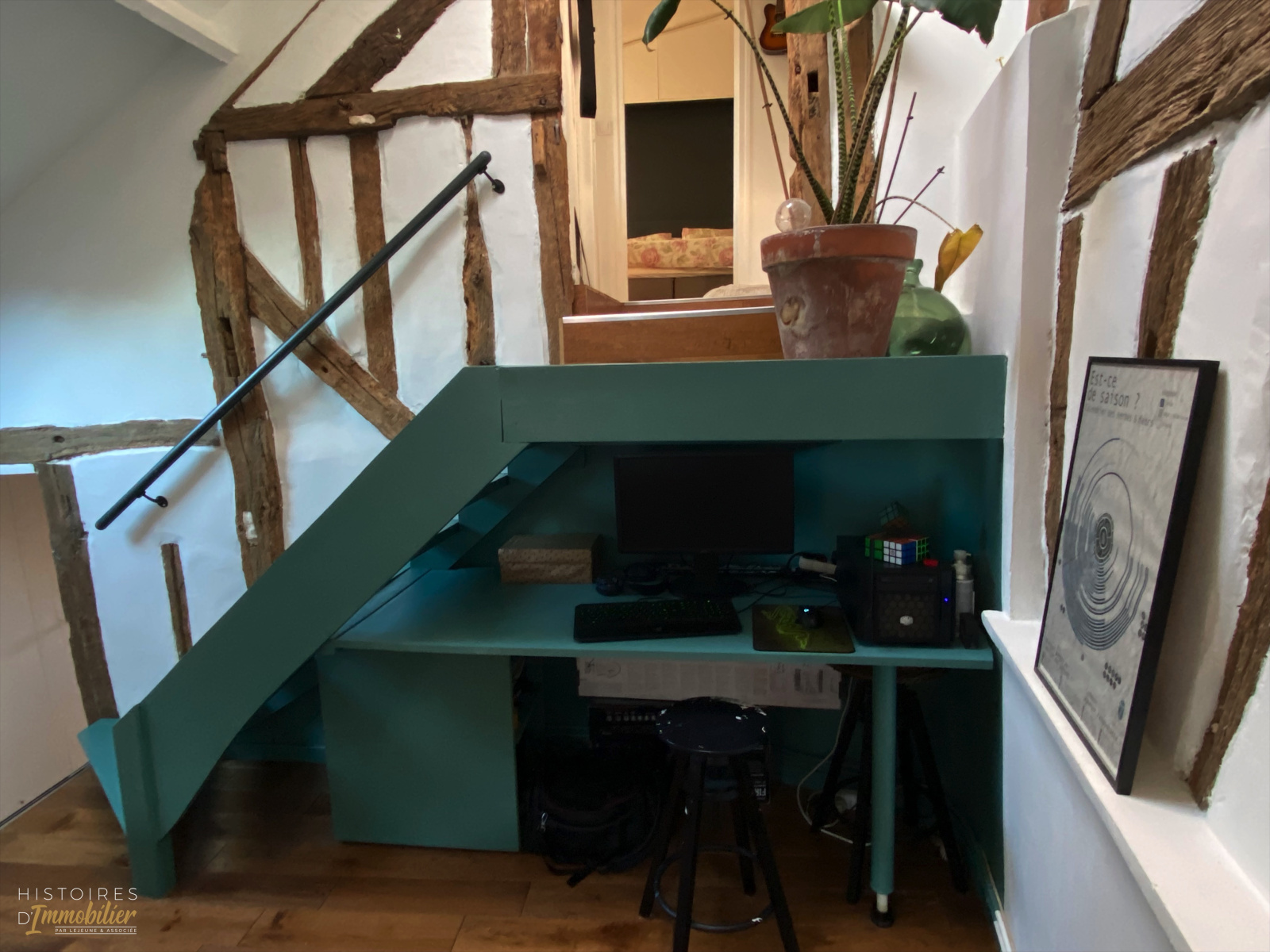 Il se situe en duplex au quatrième et dernier étage d'une petite copropriété très bien entretenue.
